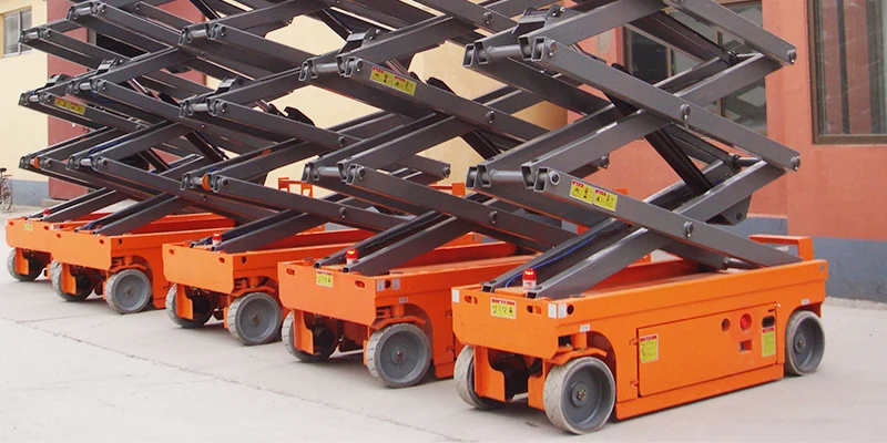 가위를 들어 올리기 고형 타이어, 폭발 방지 타이어, 유지 보수가없고, 적재 및 하역이 쉽고, 에너지 소비가 적고, 서비스 수명이 길다.